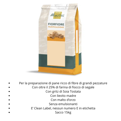 Semilavorato per la produzione di pane ad alto contenuto di fibre data la presenza di: farina di grano tenero tipo 0, farina integrale di