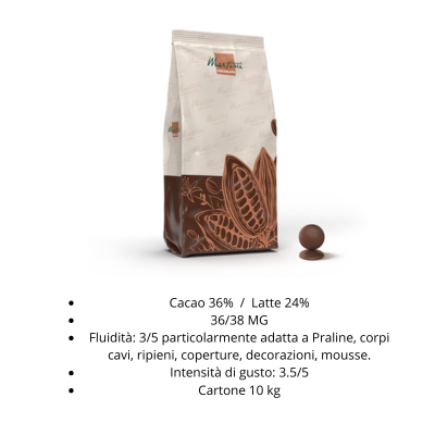 Dischi al cioccolato al latte ideale l'utilizzo per pralineria, corpi cavi, ripieni, coperture, decorazione e mousse
