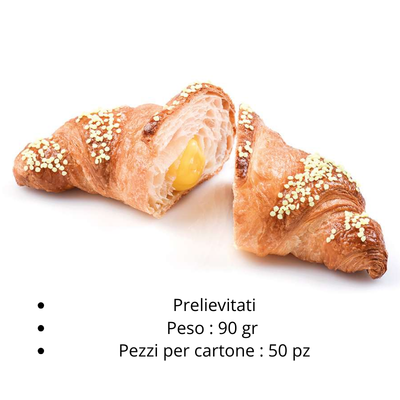 Cornetto farcito alla crema, prelievitato e surgelato, con topping di coriandoli di zucchero giallo