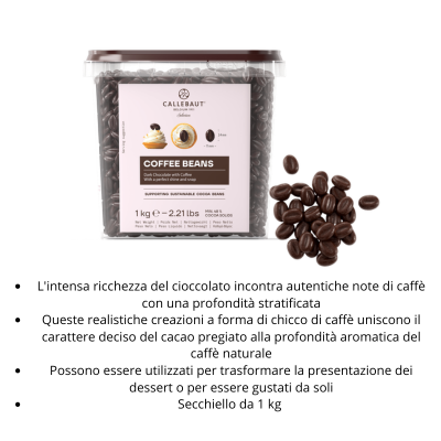 Chicchi di caffè di cioccolato aromatizzati al caffè, utili come decorazione per torte e pralineria